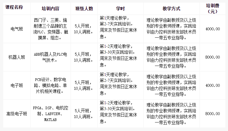 培訓費含學費,設備租用費(人為損壞設備的照價賠償)、耗材費,工作日中餐。不含路費,住宿費,工作日早晚餐及雙休時的三餐費用。可協助安排食宿,費用自理。